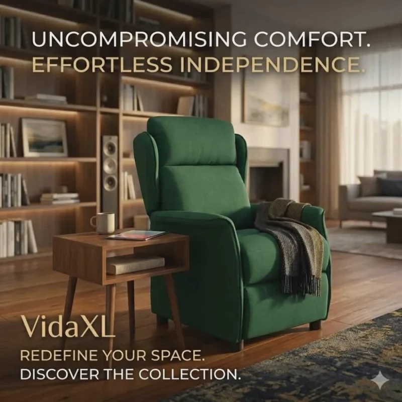 vidaXL Classic Dark Gray Fabric Recliner – Comfortable Adjustable Reclining Chair with Sponge Padding & Wooden Structure for Living Room and Office