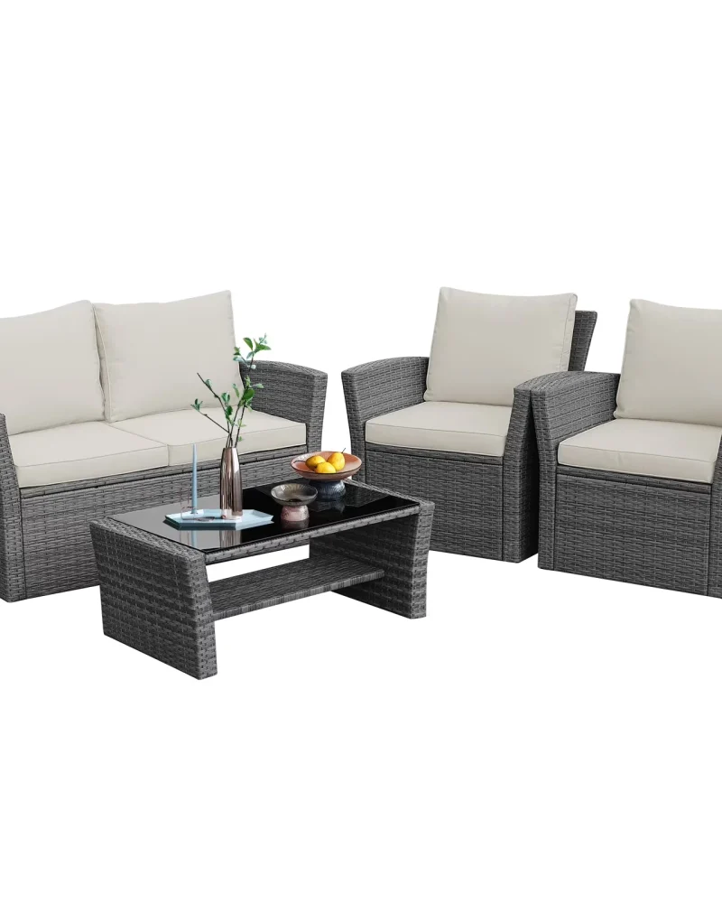 BROYHILL 4-Piece Rattan Sofa Set with Cushions & Tempered Glass Table