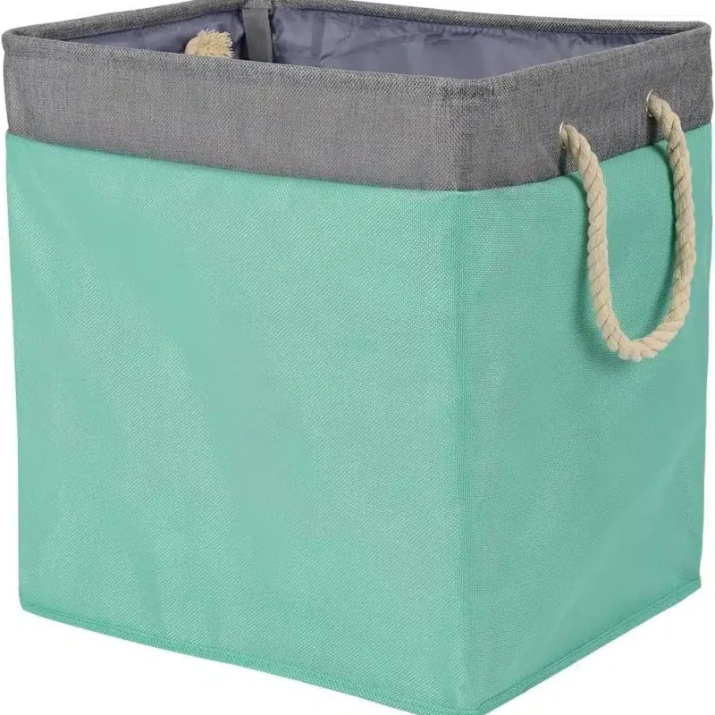 Amazon Basics Foldable Fabric Rectangle Laundry Hamper With Detachable Brackets, Jade Green, 40.6 cm x 33 cm x 43.6 cm