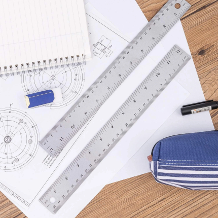 Amazon Basics 12-Inch Stainless Steel Ruler with Non-Slip Cork Base, 4-Pack, Chrome