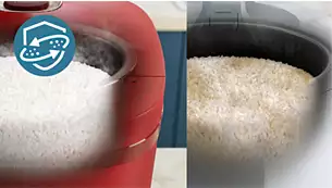 Lock in the perfect level of moisture for white and fluffy rice. Thanks to our innovative FreshDefense technology, featuring a specially designed dual-channel steam valve that seals in extra moisture, the rice remains moisture throughout the day!