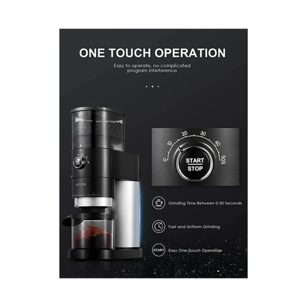 Be the first to review “ALCOOK Electric Conical Burr Coffee Grinder, 42 Precise Grind Settings, One Touch with 50S Grinding, Easy to Clean, Matte Black” Cancel reply