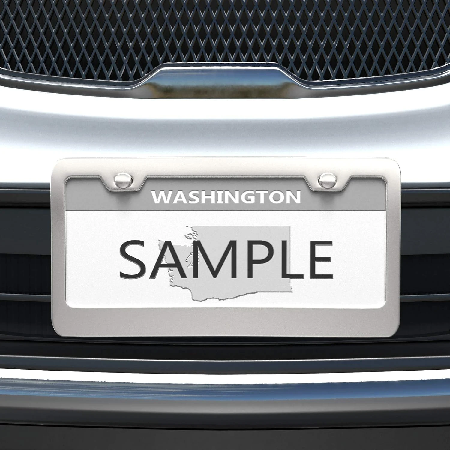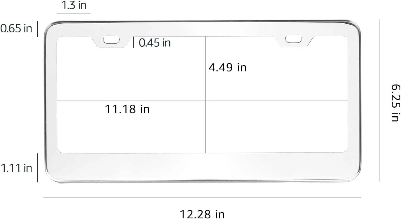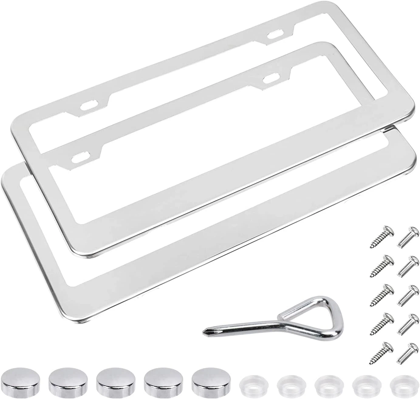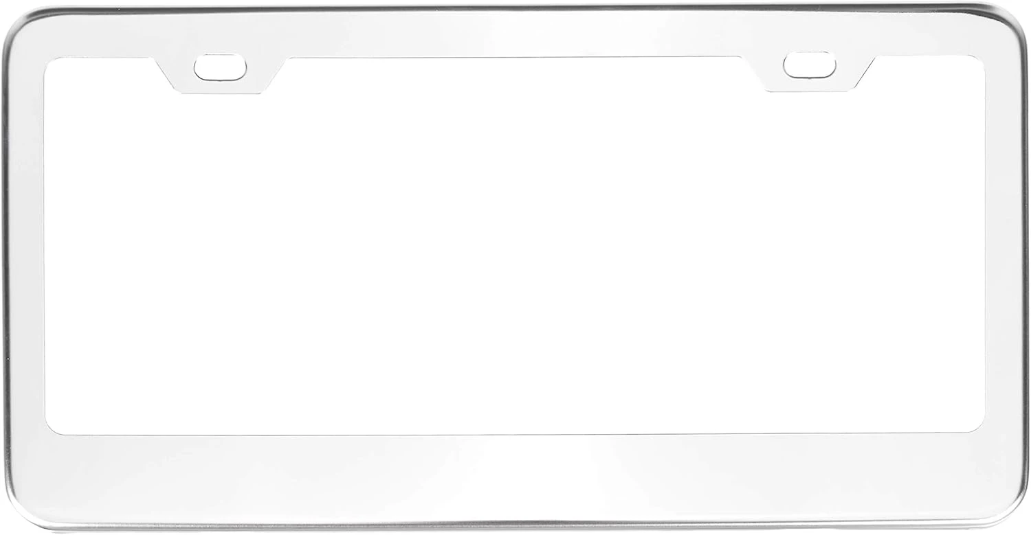 Amazon Basics Stainless Steel License Plate Frame Pair with Screw Caps – 2-Hole, 12.2” x 6.3”, Silver