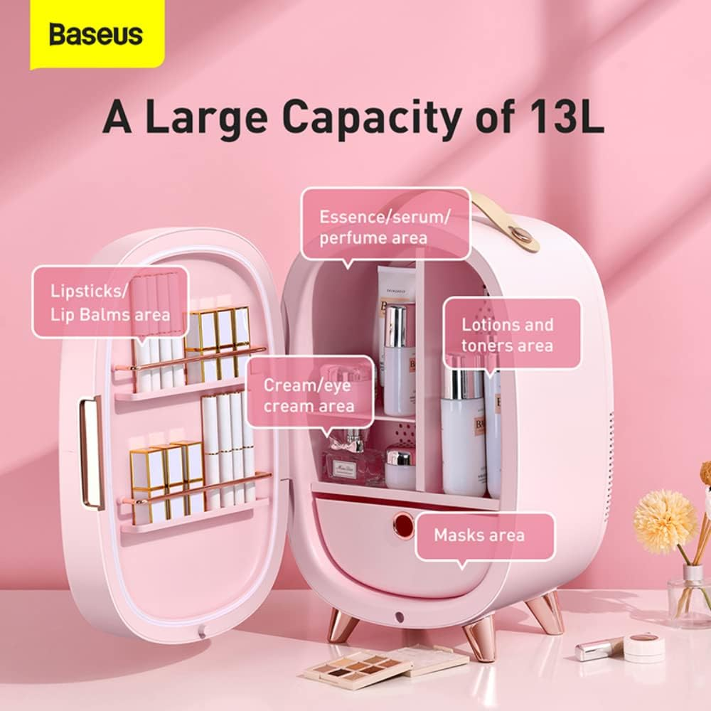 Baseus Mini Cosmetic Fridge Portable Professional Beauty Make-Up Refrigerator with Mirror 13L CRBXNS-04 Pink
