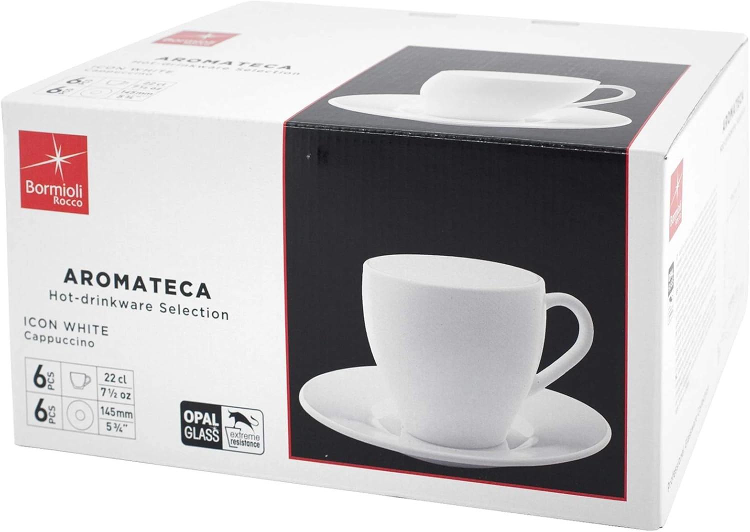 Bormioli Rocco Aromateca 766825 Set of 6 Cups Opal Glass, White, 22 cl