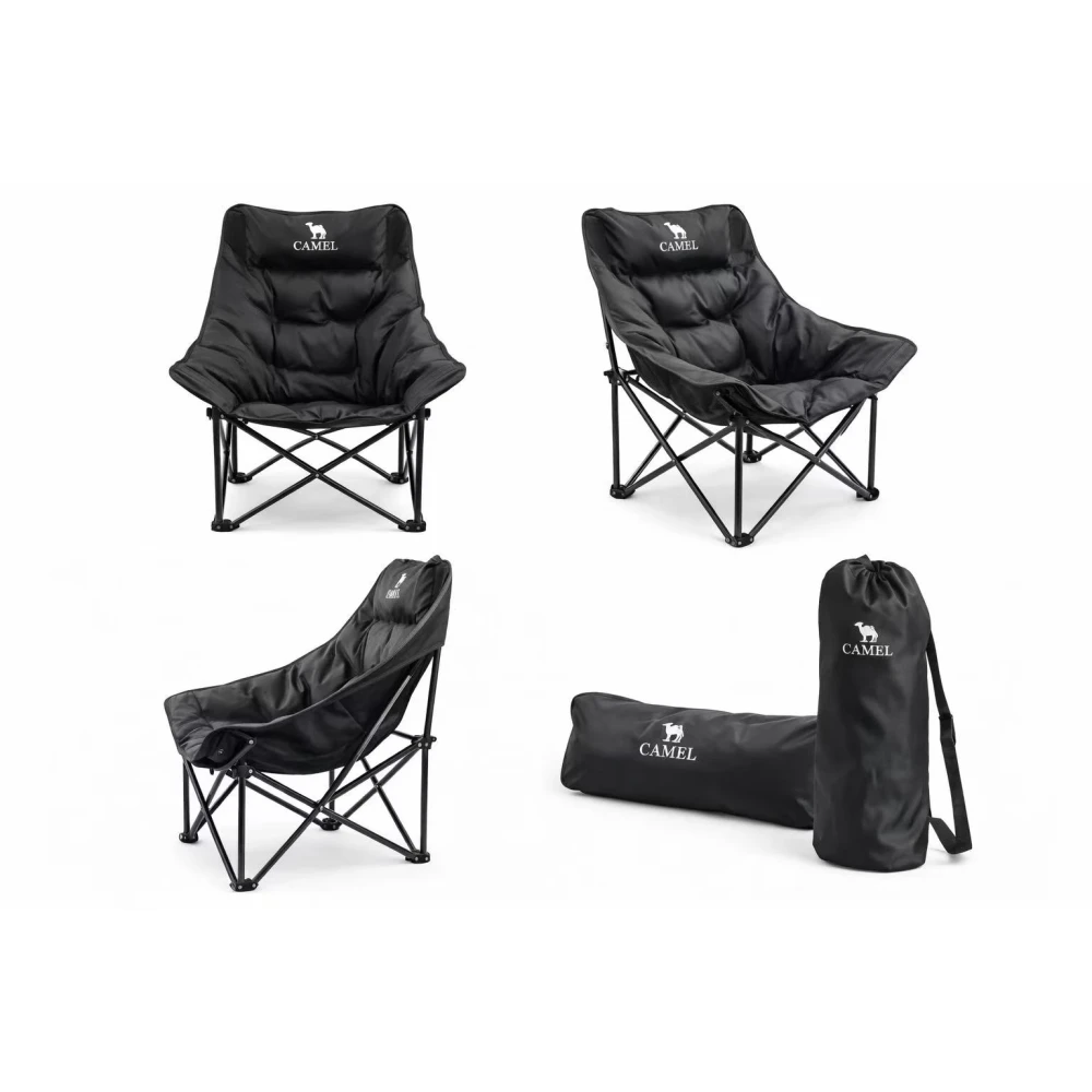 A premium foldable camping chair featuring thick padded filling for superior comfort. Lightweight, durable, and easy to carry — perfect for outdoor adventures, camping, and beach trips.