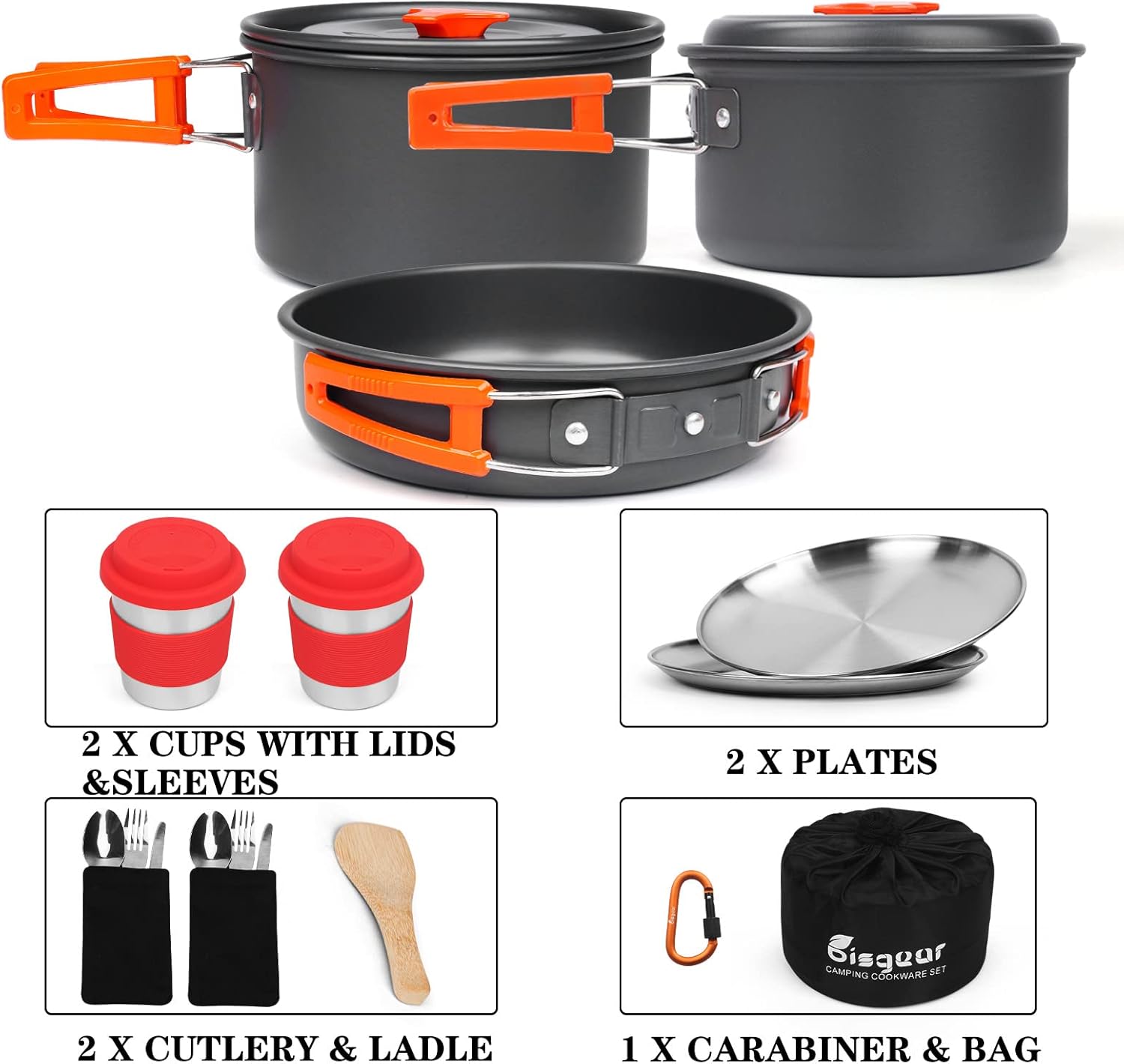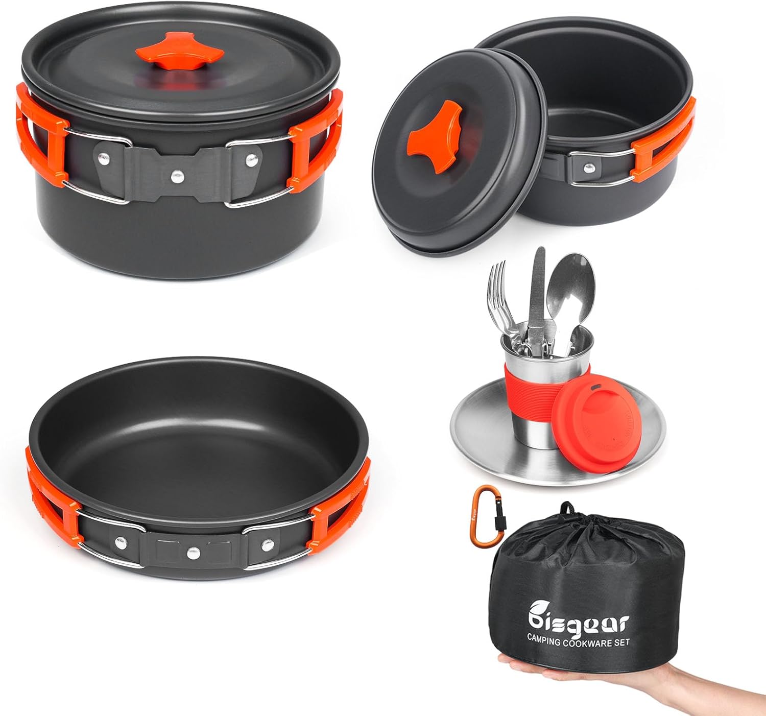 - PERFECT GIFT FOR YOURSELF/ FAMILY- It is suitable for camping, hiking, backpacking, picnic and other outdoor activities. Lightweight and extremely durable anodized aluminum perfect for camping backpacking, buy 1 Bisgear camping cookware set, you get everything that you or your family need.