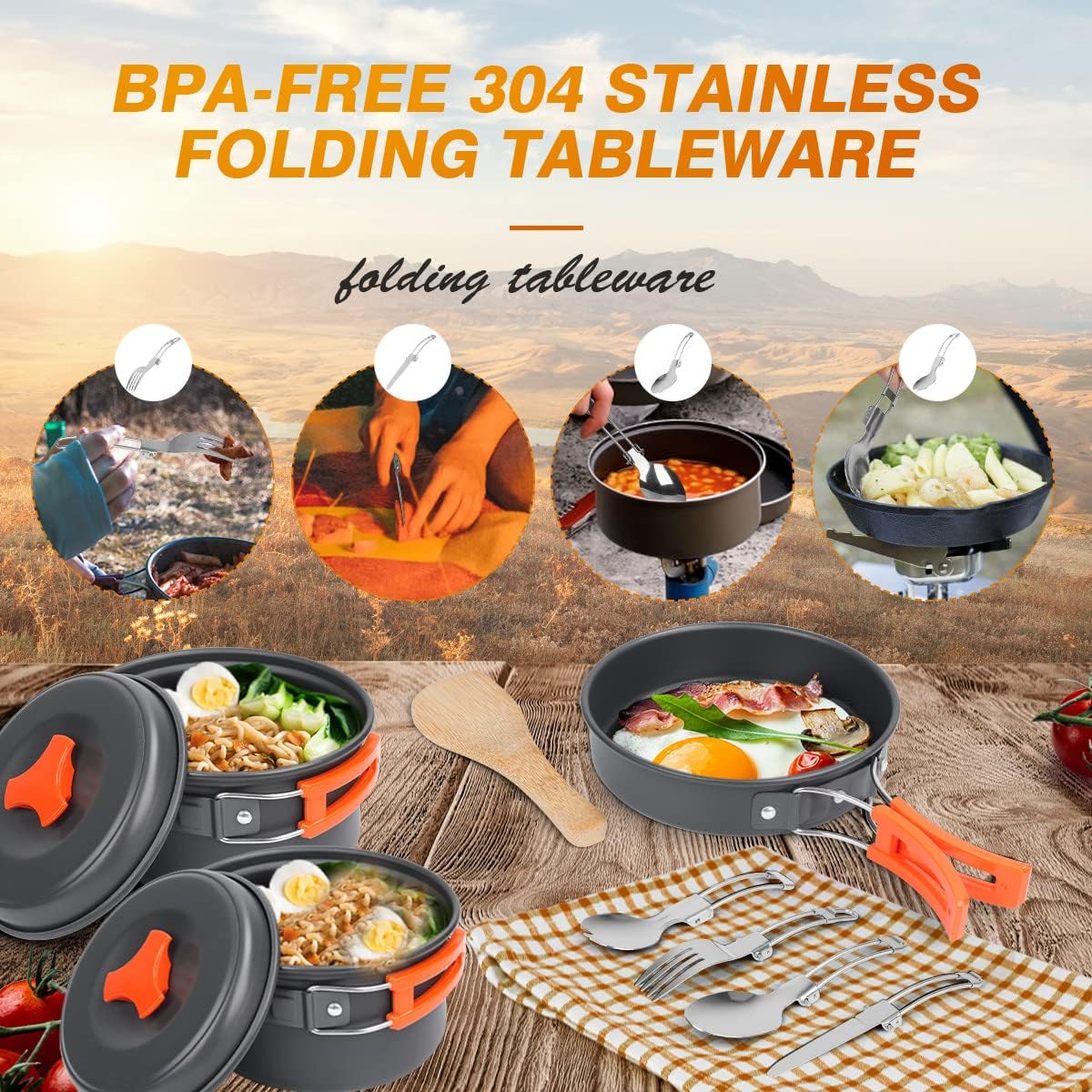 Camping Cookware Mess Kit for Backpacking Gear – Camping Pots and Pans Set with Cups Plates Flatware – Camping Cooking Set Accessories – Survival Gear and Equipment