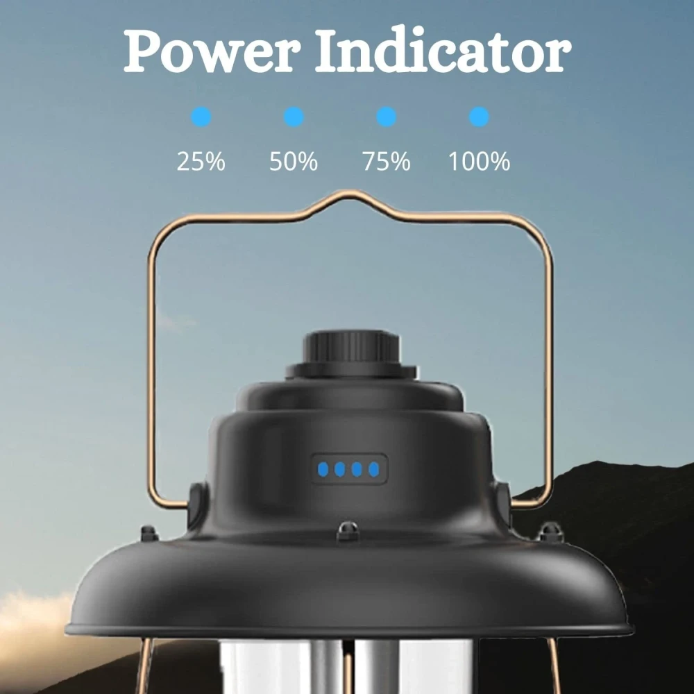 - 【Power Indicator Light】: There is a power indicator light on the lampshade, which can visually see the remaining power of the camping light. When the power is low, the light can be adjusted to warm light mode, which can provide longer-lasting lighting.