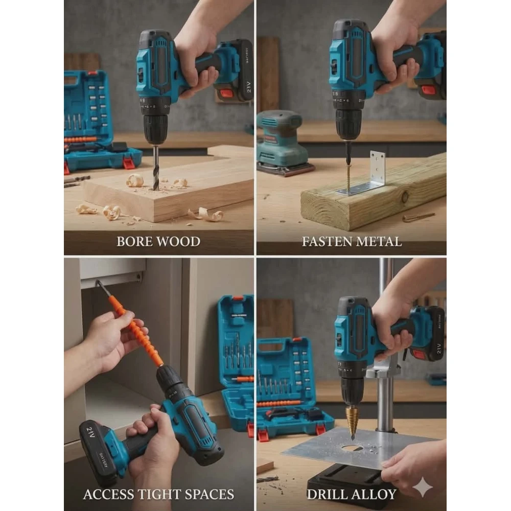 ​Versatile Accessory Bundle: Includes a wide range of drill bits, screwdriver bits, socket wrenches, and a flexible extension shaft for hard-to-reach areas.