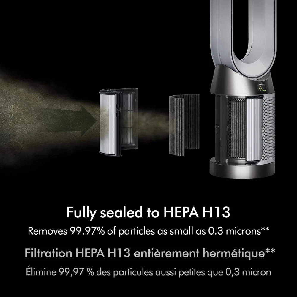 - *Tested per Dyson internal test standards for whole-room air projection (DTM108) and purification coverage (TM-003711). **Tested per ISO 29463