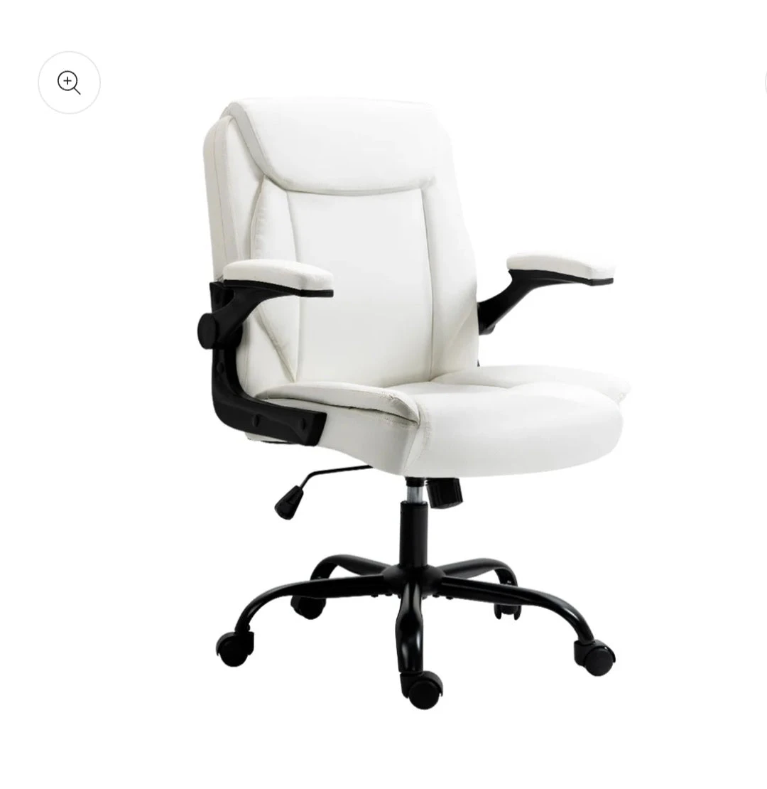 Ergonomic Office Chair with Flip-Up Armrests – White