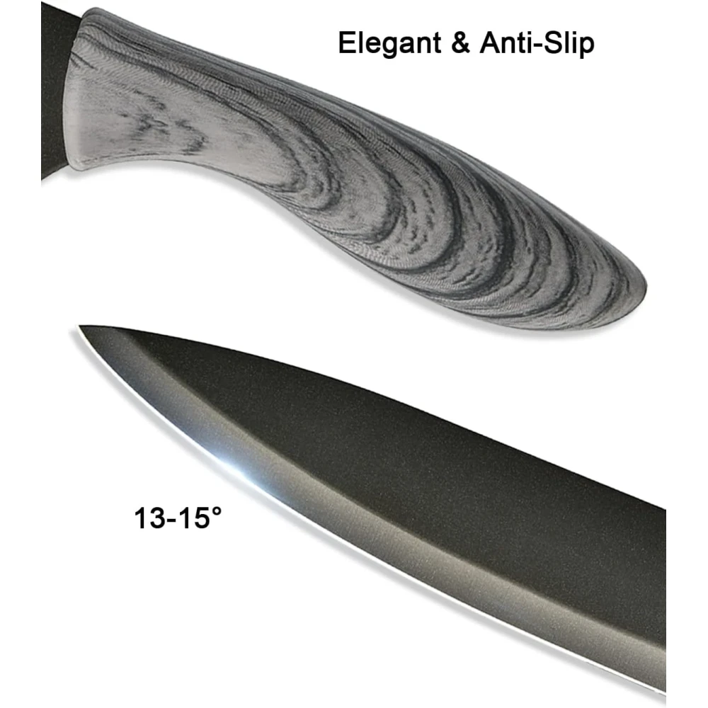 - PRECISION MEETS CONFIDENCE – Our knives boast a meticulously hand-sharpened 13-15° blade, ensuring precision cuts with exceptional durability. The antioxidant-coated surface provides added assurance for confident and safe use.