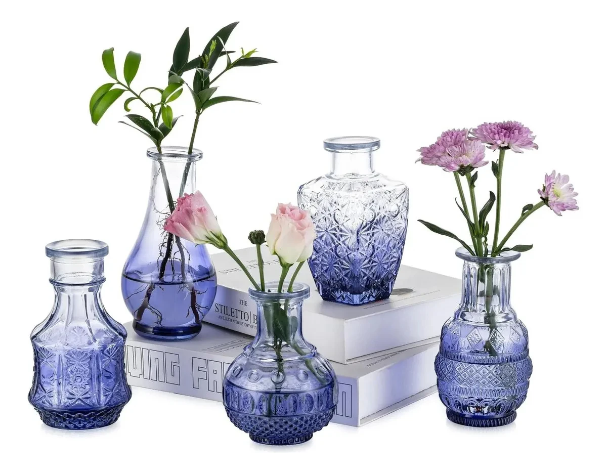 • Antique Small Glass Vase: These assorted flower vases with decorative etching and shapes give an eclectic feel and also add a retro and rustic charm to any room. They are elegant enough on their own, and simultaneously highlight the unique beauty of your plants when paired with flowers.