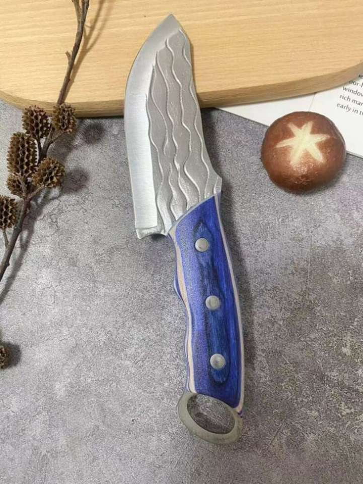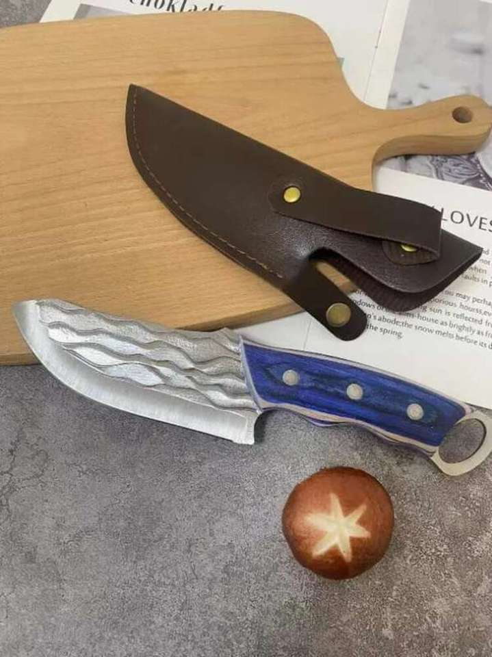 This premium-quality handcrafted hunting knife combines functionality, durability, and elegant design. The blade is forged from high-carbon stainless steel with a unique wave-pattern texture for enhanced strength and style. Its sharp edge ensures excellent cutting precision for outdoor activities like camping, fishing, and bushcraft.