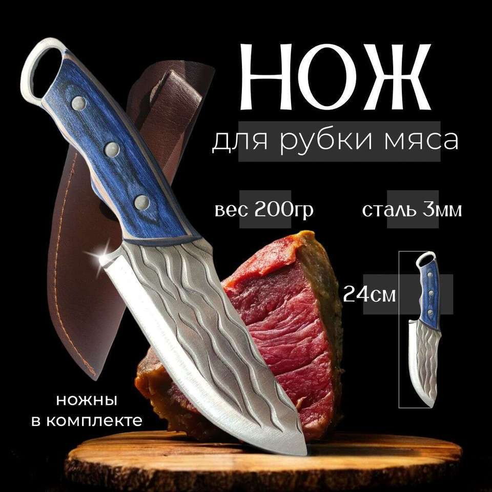 • Handle: Blue wood with rivet reinforcement
