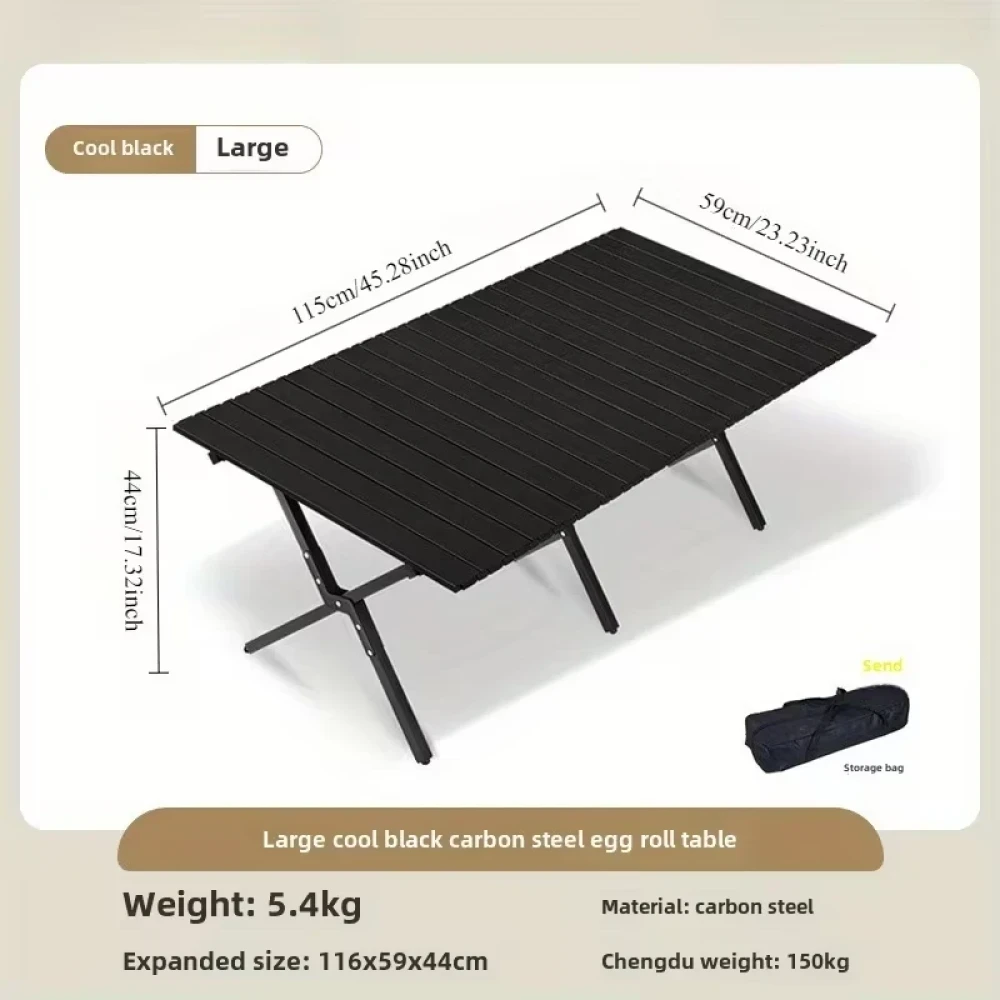 High-Quality Outdoor Camping Large Size (115CM) Portable Foldable And Storable Egg Roll Table, Reinforced And Widened Carbon Steel Legs for Greater Stability And Sturdiness