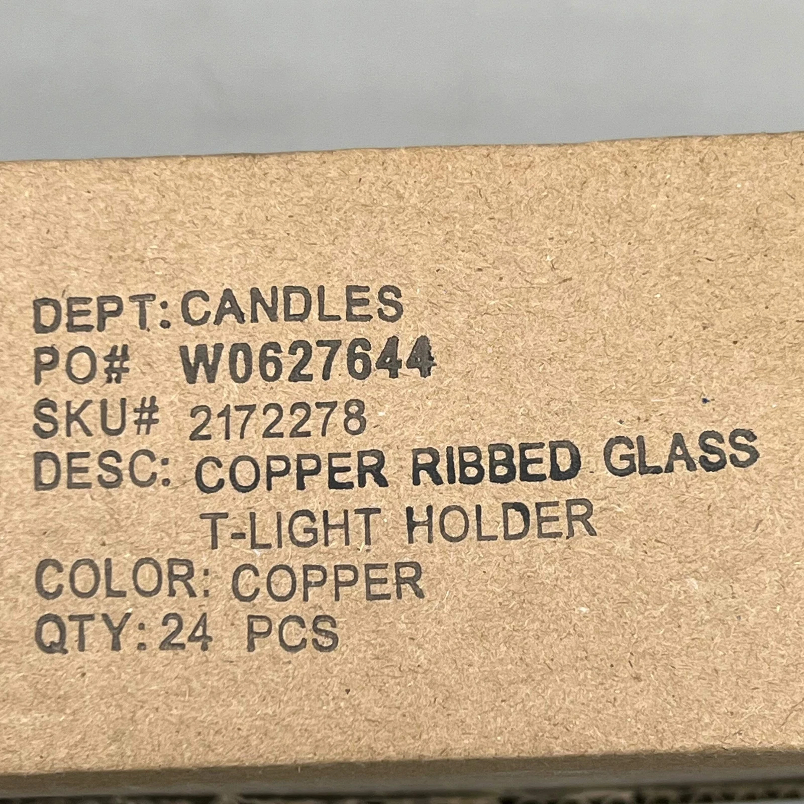 HOBBY LOBBY (24 PACK) Ribbed Glass Tea Light Holder Copper 2″ Dia X 1″ W0627644
