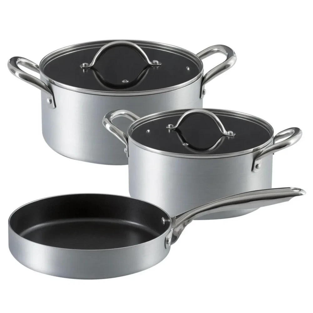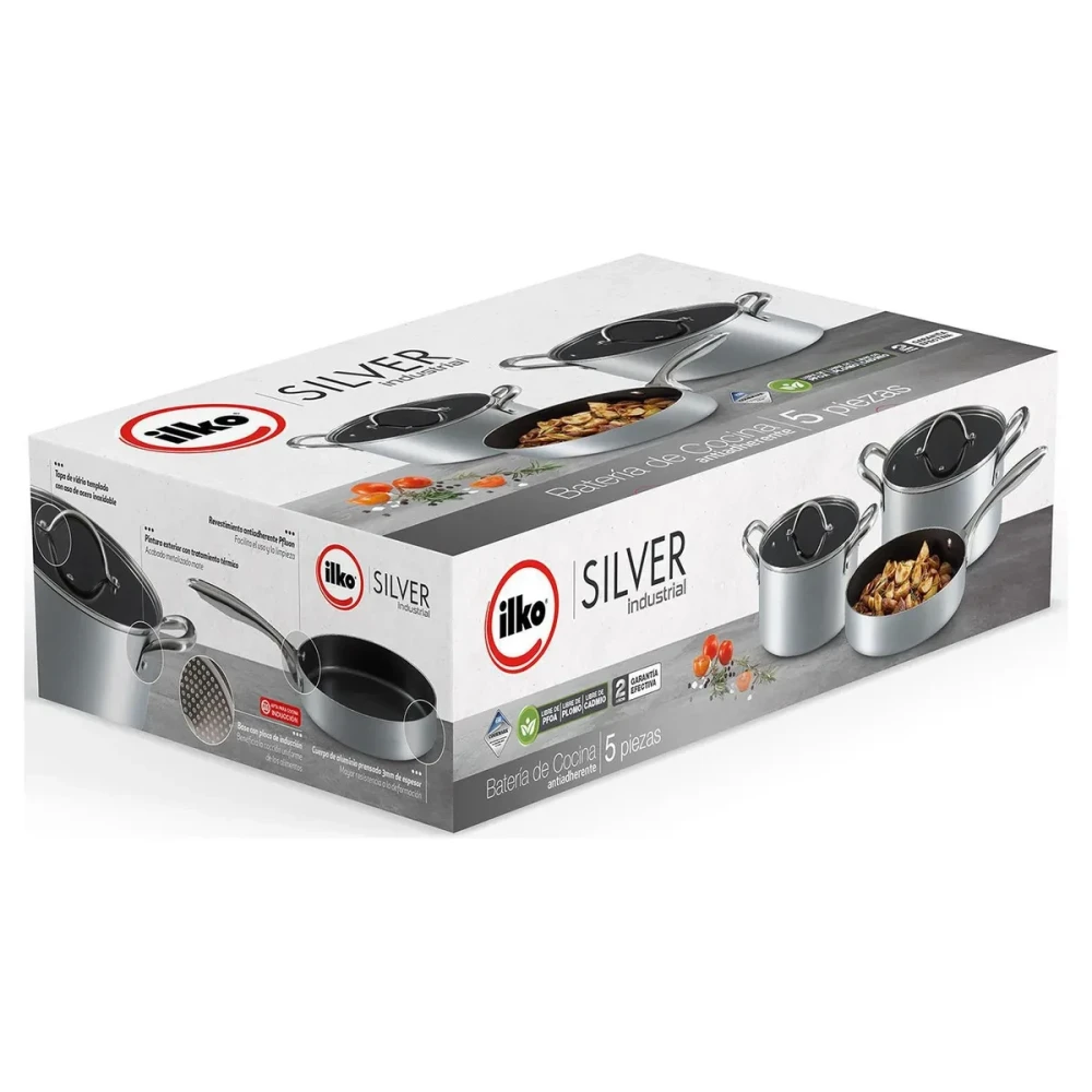 Ilko 5 Piece Silver Industrial Non-Stick Stainless Steel Cookware Set, Gray