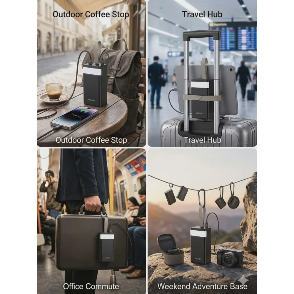 ​The Remote Professional: Keep your phone, tablet, and wireless earbuds powered through long commutes or flights without searching for a wall outlet.