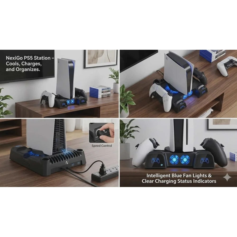 ​This all-in-one docking station is designed to keep your gaming setup organized, your console cool, and your accessories ready for action.