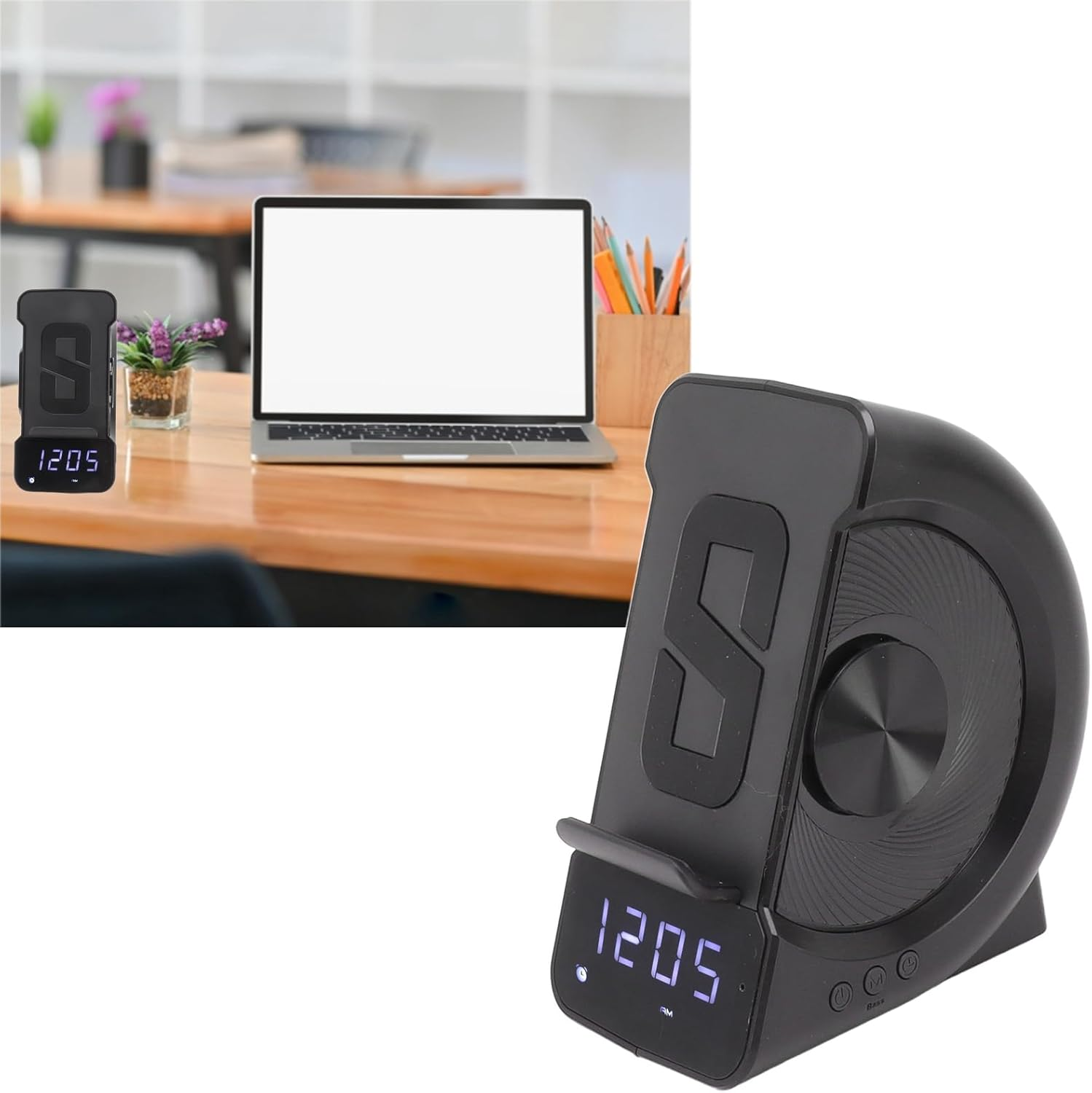 PerGar 3 in 1 Alarm Clock Radio, Digital Alarm Clock with Bluetooth Speaker, ABS Alarm Clock with Wireless Charging for Bedside,FM Radio Bluetooth Speaker with Mobile Phone Holder for Bedroom,(Black)