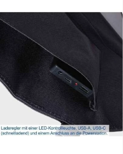 Integrated charge controller with LED indicator light, USB-A, USB-C (fast charging) and DC connector