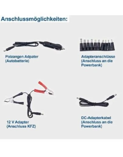 Ideal for charging smartphones, tablets, external chargers and car batteries, e.g. when camping, in a motorhome, on a balcony, on a boat or in a garden shed.
