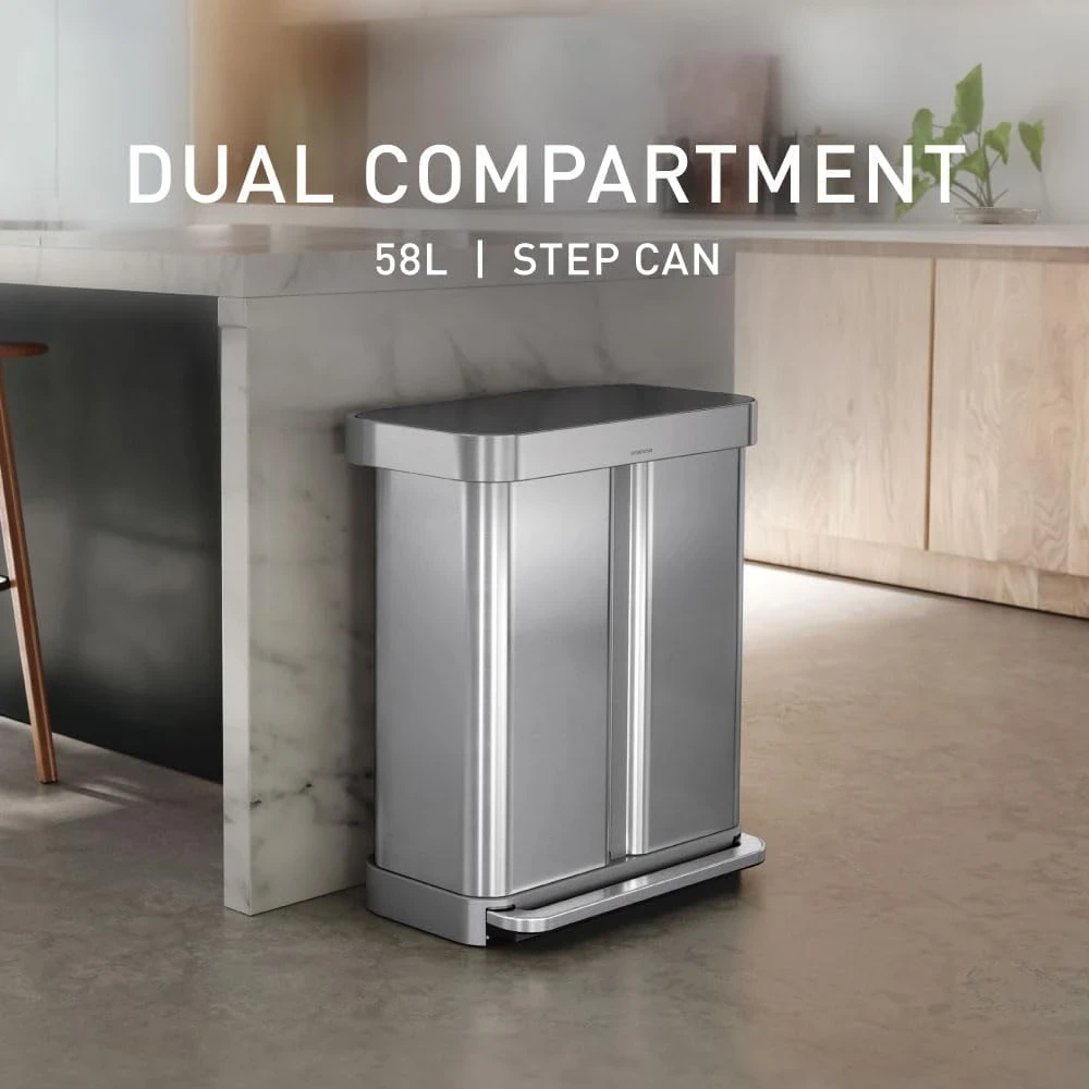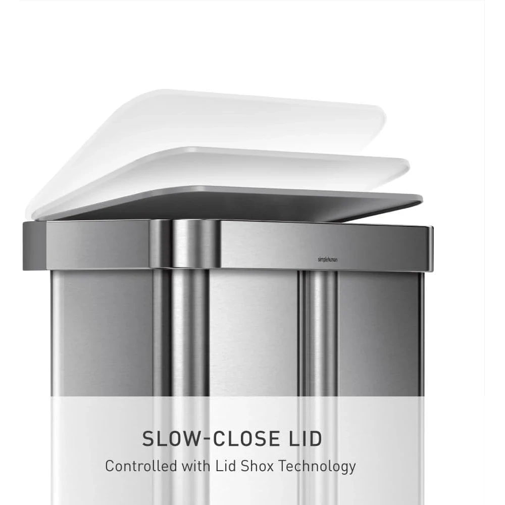 Be the first to review “simplehuman 58 Liter / 15.3 Gallon Rectangular Dual Compartment Recycling Step, Brushed Stainless Steel with Soft-Close Plastic Lid Kitchen Trash Can” Cancel reply