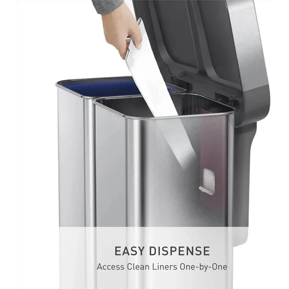 - dispenses liners inside the can: Our liner pocket dispenses liners one by one quickly and easily for a faster liner change.