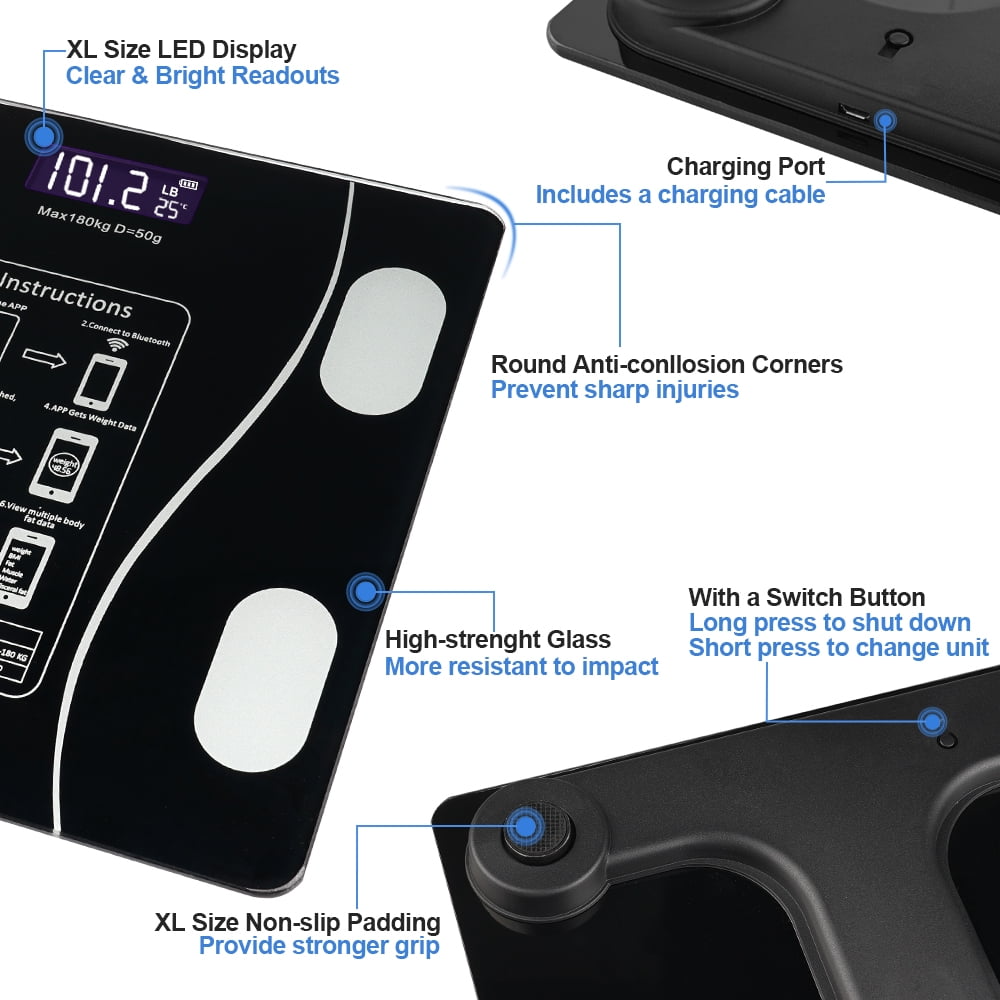 Immediate readings as soon as you step on the bathroom scale. Bright and large LCD display automatically lights up, you can easily read your results even in the dark.