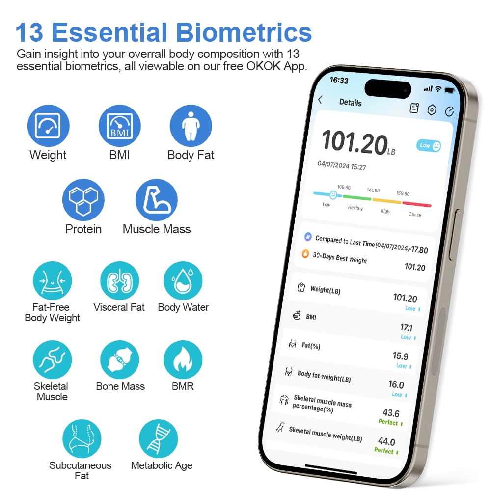 Seamlessly integrate our scale into your fitness routine. Syncs data with popular fitness apps like Apple Health, Google Fit, FitBit. Supports unlimited users for convenience.