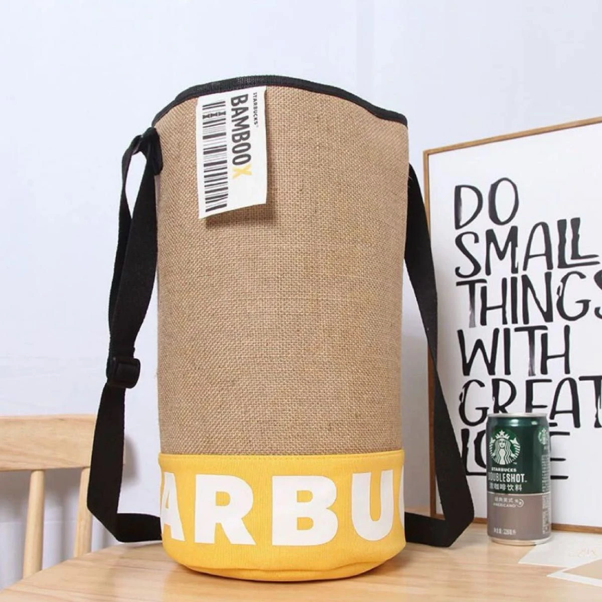 Starbucks Linen Straw Woven Bucket / Shopper Tote Bag