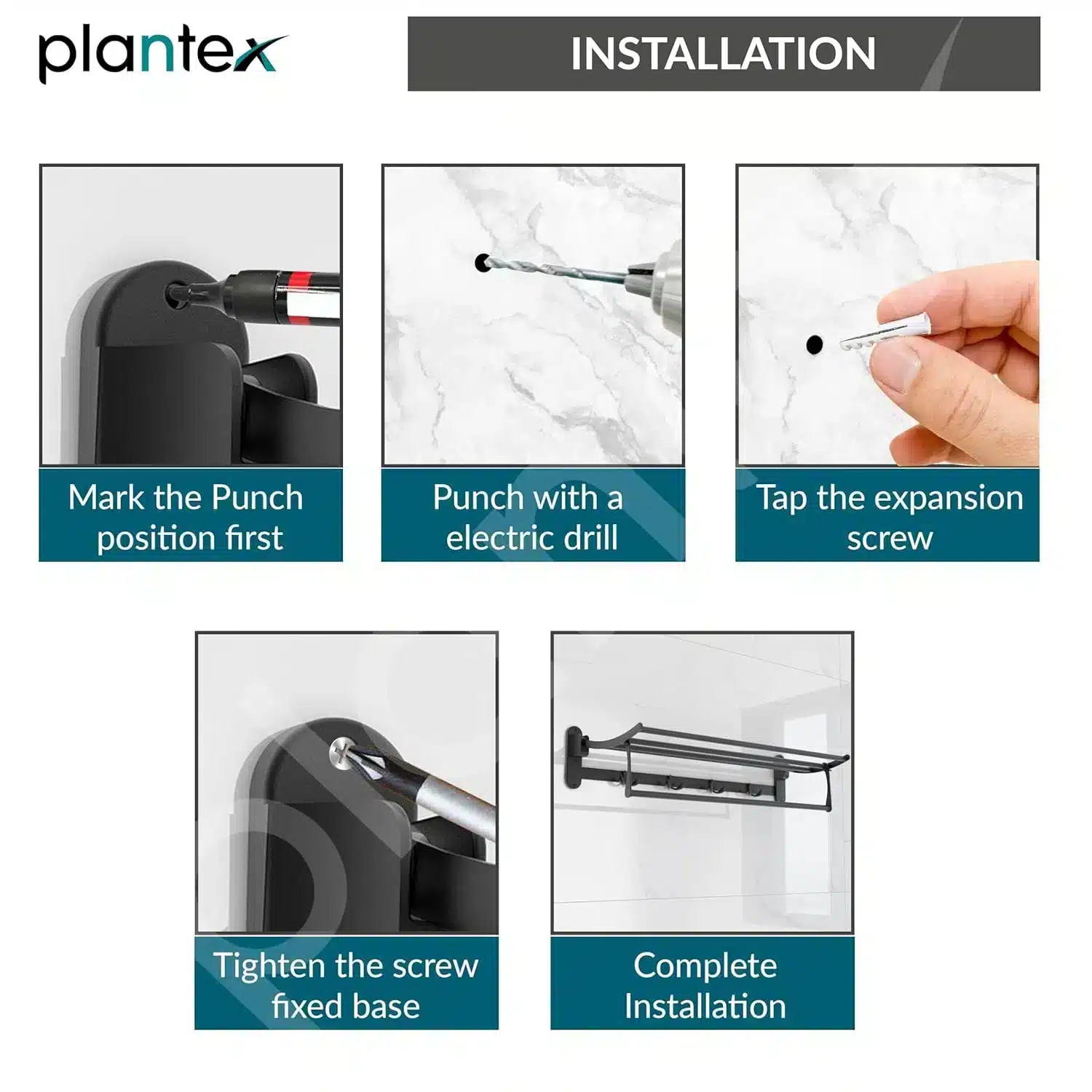 • 𝐏𝐥𝐚𝐧𝐭𝐞𝐱 Stainless Steel Folding Towel Rack is one end solution to all kinds of bathroom hassles. It is more than a simple towel rack, it solves the problem of towel rod, shelf and hook all in one solution