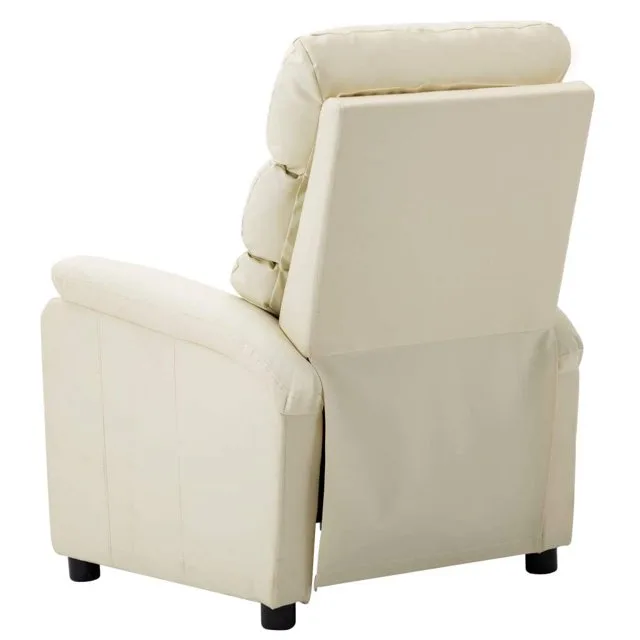 The recliner is made of faux leather, filling foam and iron frame, making it stable and soft to be seated. With a simple press of the button on the handy control, the backrest can easily be adjusted backwards and the footrest can also be adjusted upwards, allowing you to lie down comfortably. This armchair is also easy to clean with a damp cloth.