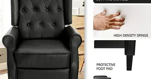 BALICHUN Leather Recliner Chair, Black Accent Chair, Wingback Push Back Recliner Chair for Living Room or Bedroom, Massage Recliner Chair for Adults, Small Single Reclining Sofa Lounge (Black)