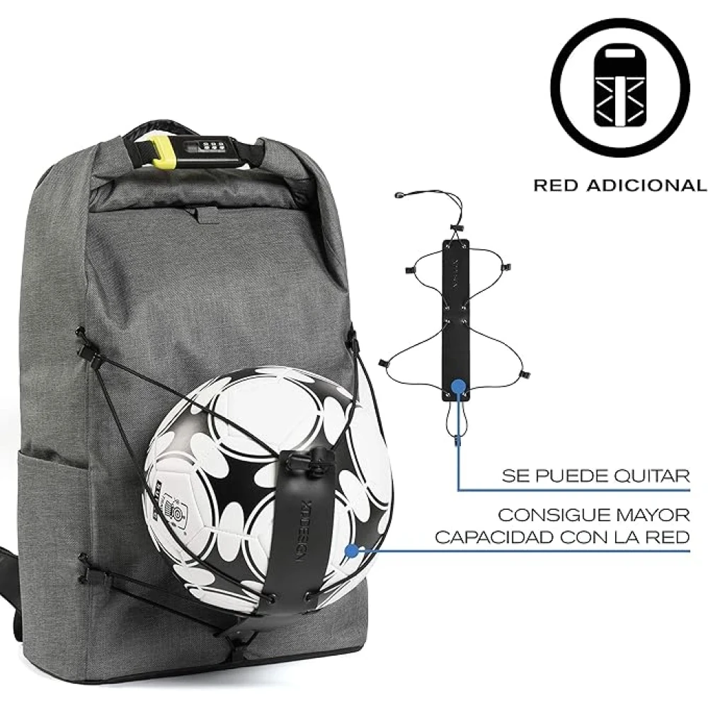 - Large capacity (up to 27 liters), Luggage strap, Additional capacity net (30×30 cm)