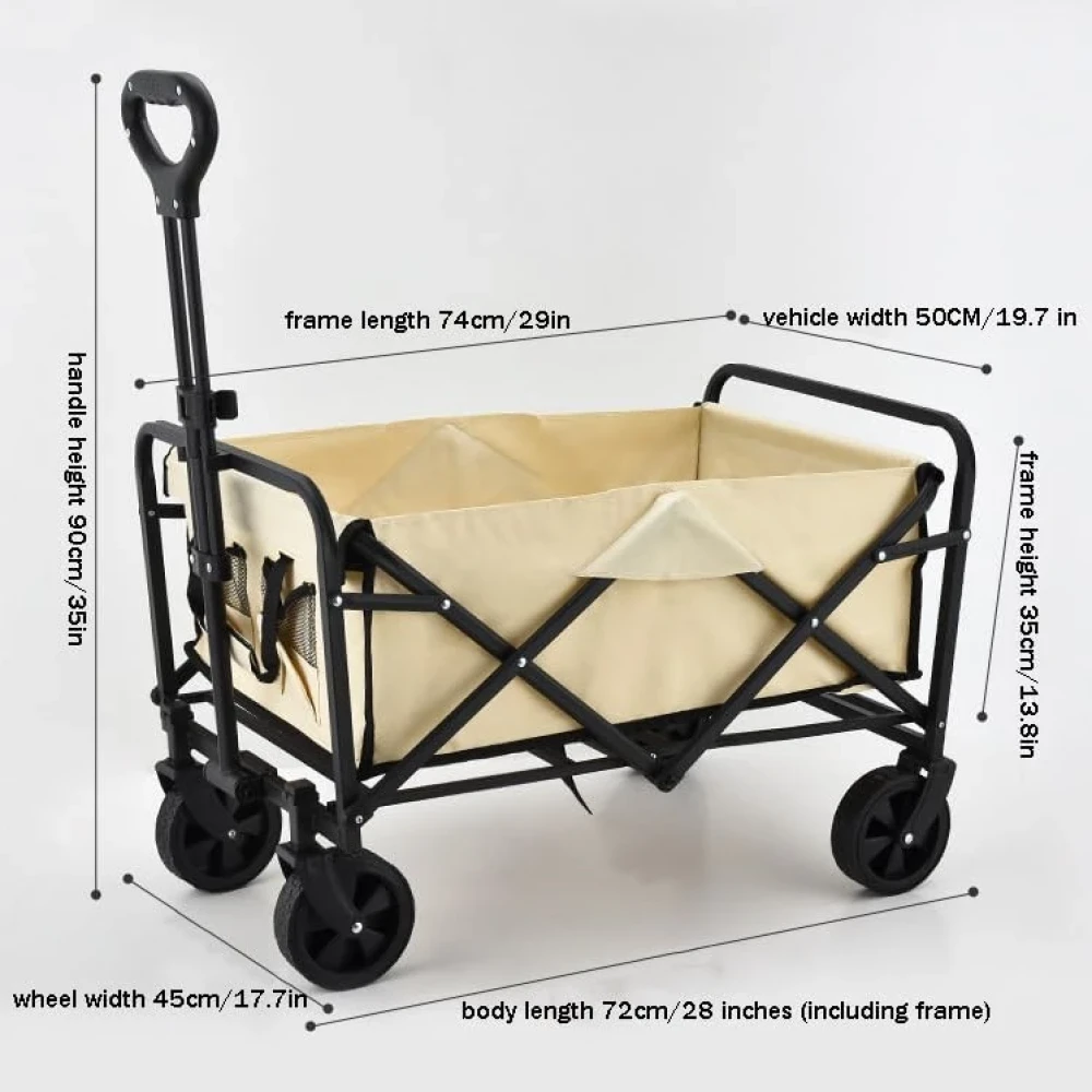 • ★Easy to Use and Store: Doesn’t take a minute to assemble&open up the beach trolley cart. The utility collapsible wagon can be folded compactly, and it can be stored easily in your car trunk or closet for transport